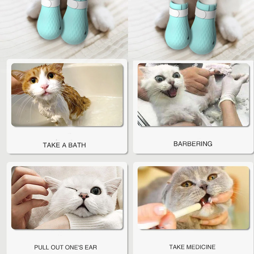 4pcs Adjustable Pet Cat Paw Protector for Bath Silicone Anti Scratch Shoes cat foot cover Cat - Pet Products