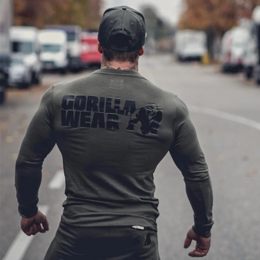 Fitness Sporty Long sleeve t shirt Men Gyms Bodybuilding Workout Skinny Cotton Print T shirt Male - Tops