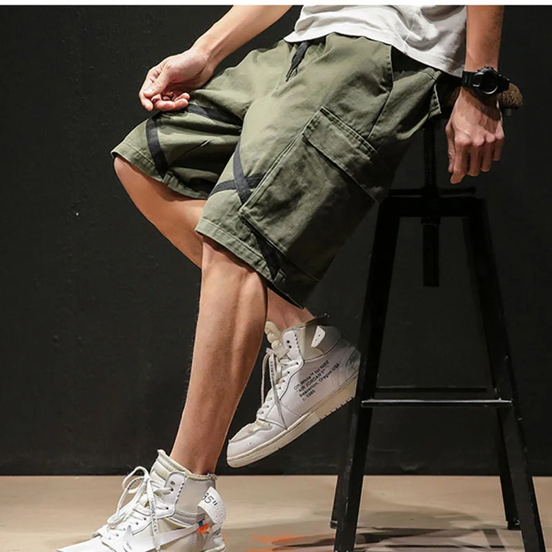 Men shorts safari style 2019 new summer cotton loose male casual shorts knee length Japanese style - Shorts