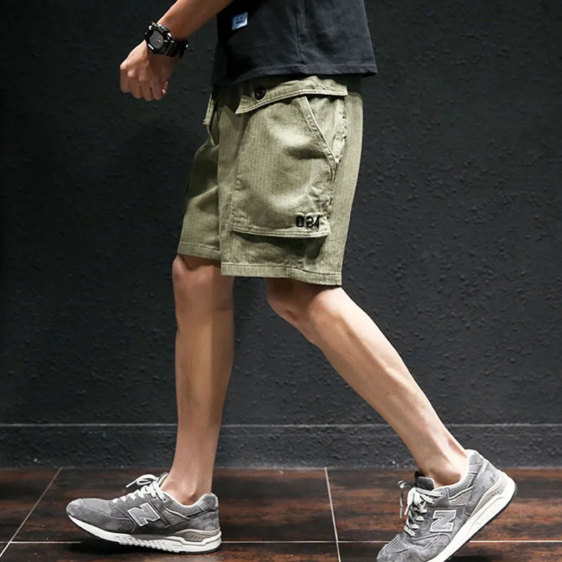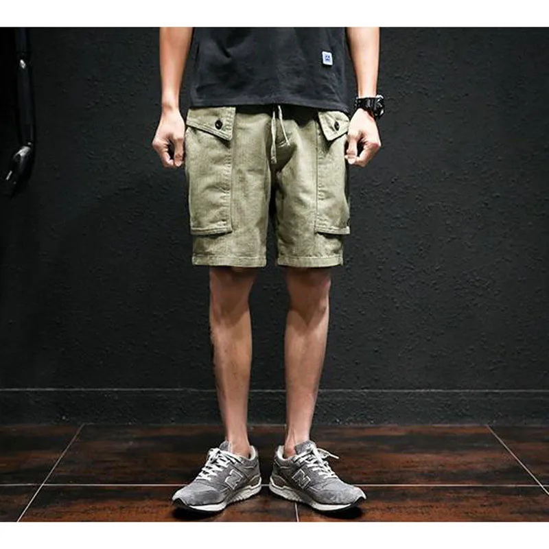 Men shorts safari style hot sale 2019 new summer cotton male casual shorts pocket fashion Japanese - Shorts