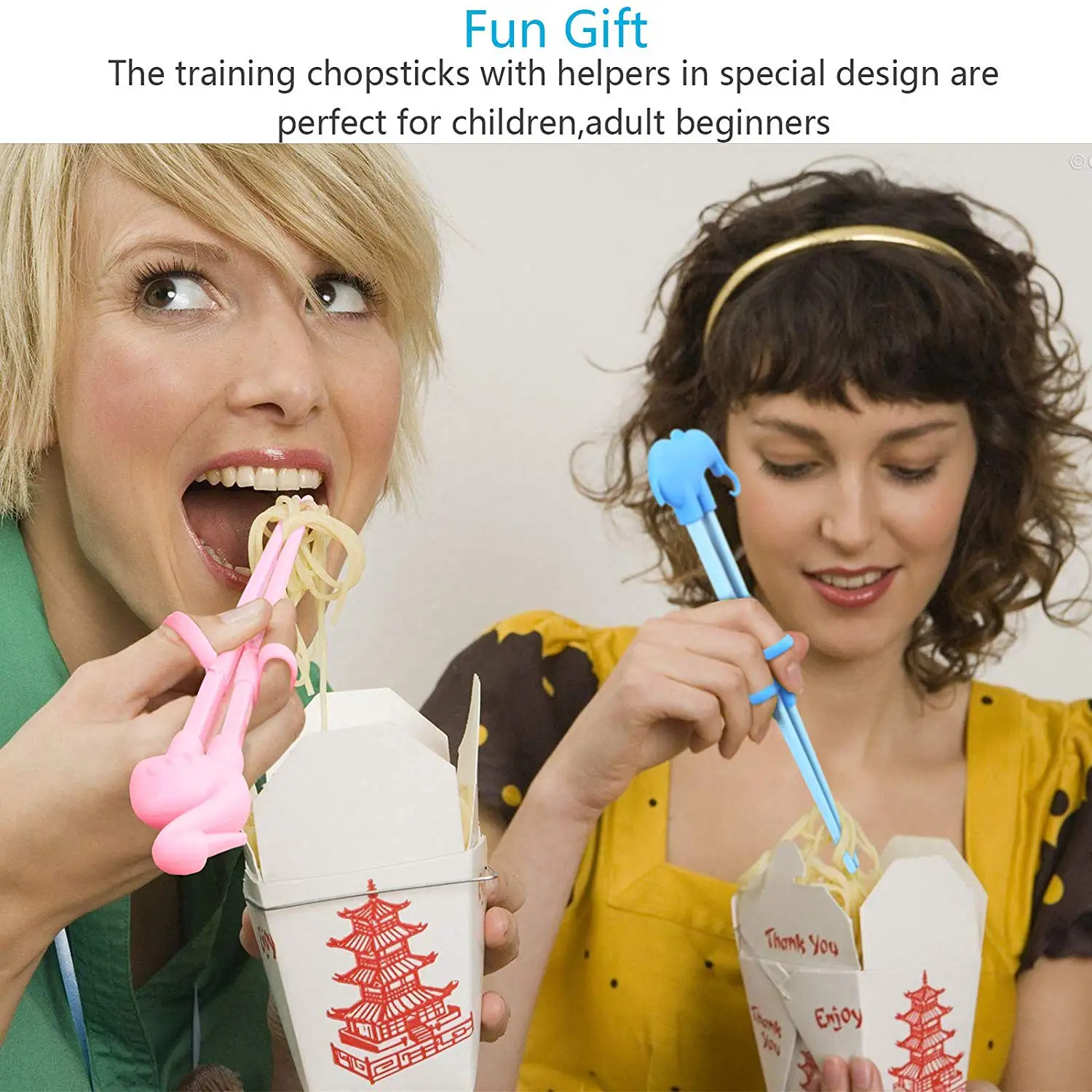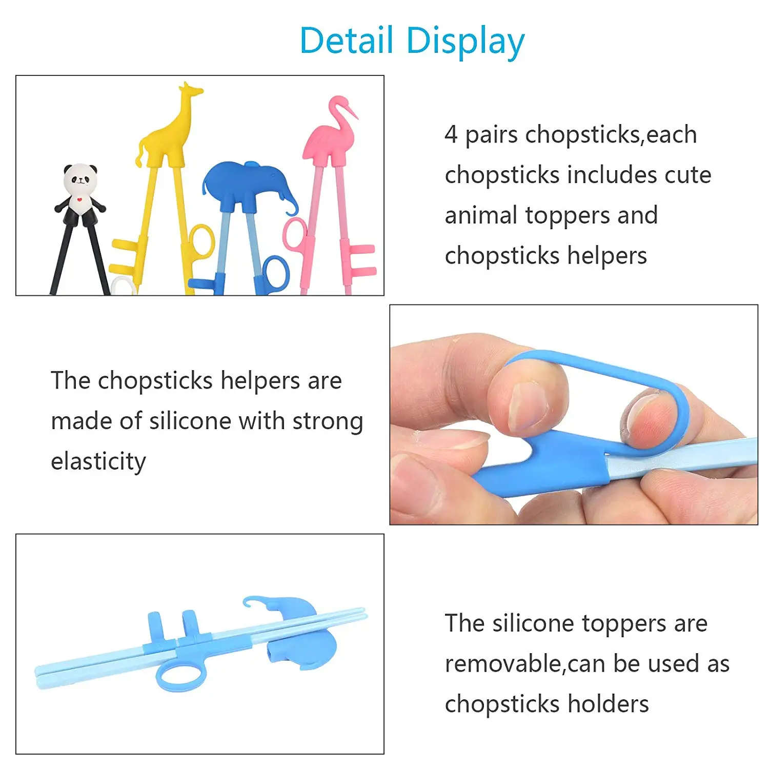 METABLE 4 Pairs Multi Animal Design Children s Chopsticks with Helpers Easy to Use Learning - Kitchen,Dining