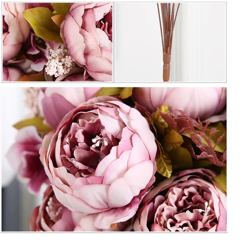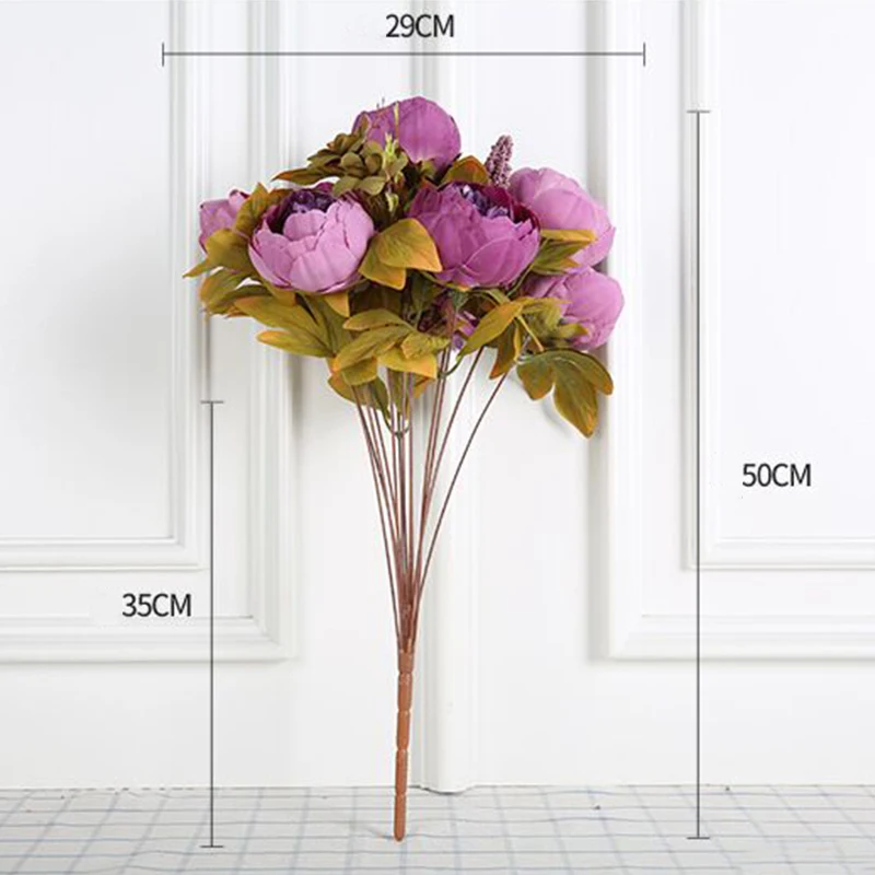 yumai 50cm Silk Peony Artificial Flower Bouquet 13 Heads Branches Retro Purple Fake Flowers for Wedding - Festive