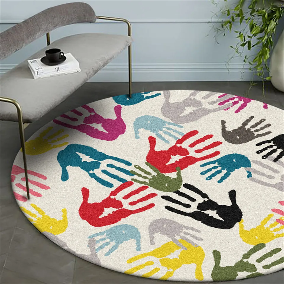 Palm Design Round Carpet Colorful Non slip Mat Computer Chair Area Rugs For Living Room Lounge - Home Textile