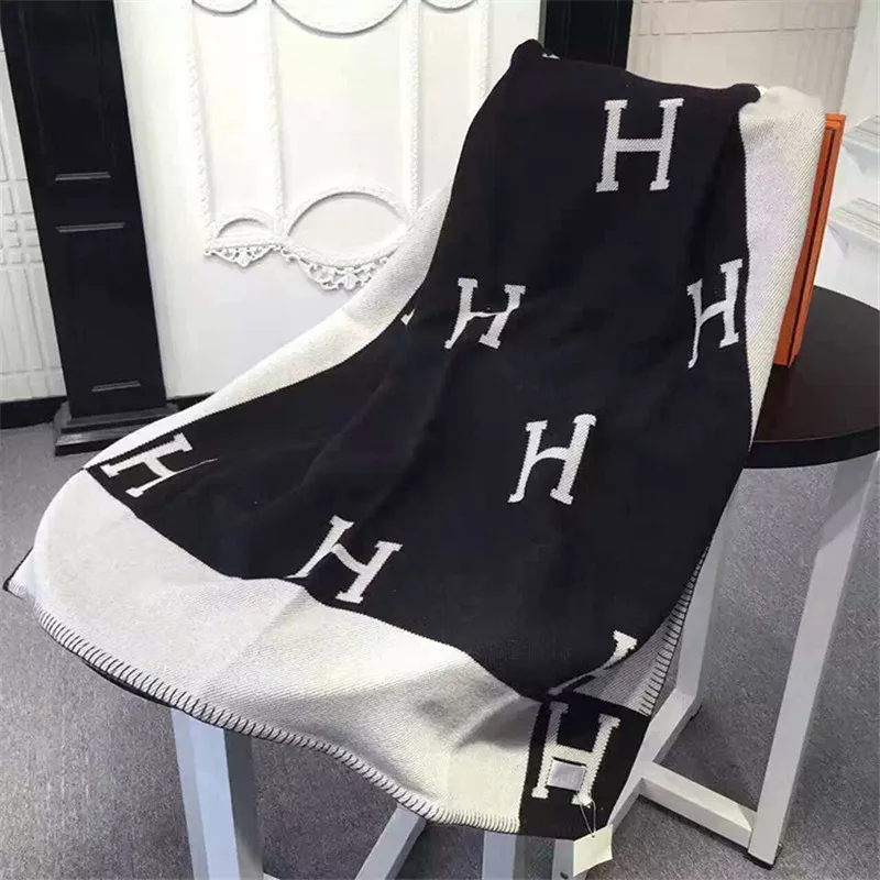 Brand H Blanket Plaid Cashmere Crochet Soft Wool Scarf Shawl Portable Warm Sofa Bed Fleece Knitted - Home Textile