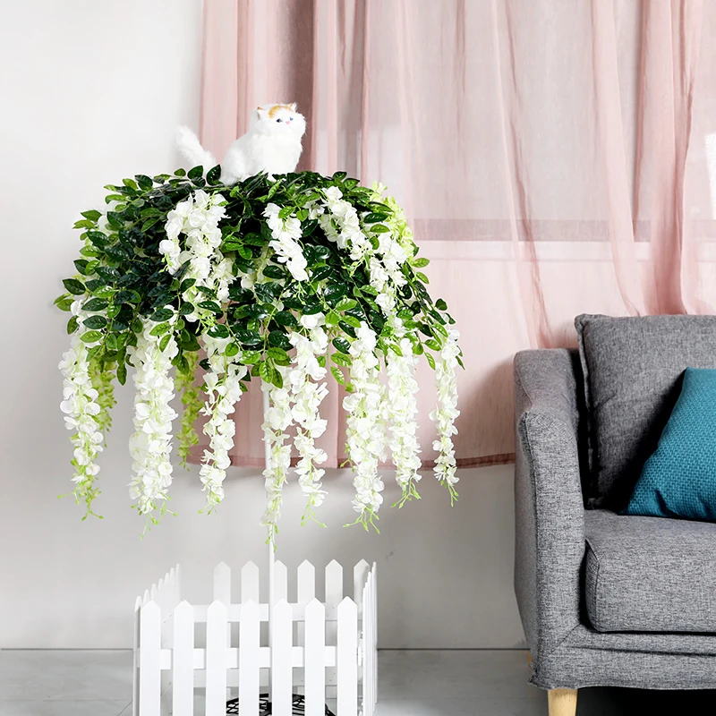 yumai 12pc set 110cm Wisteria Silk Flowers Artificial Vines with Leaves Wall Hanging Flowers Rattan for - Festive