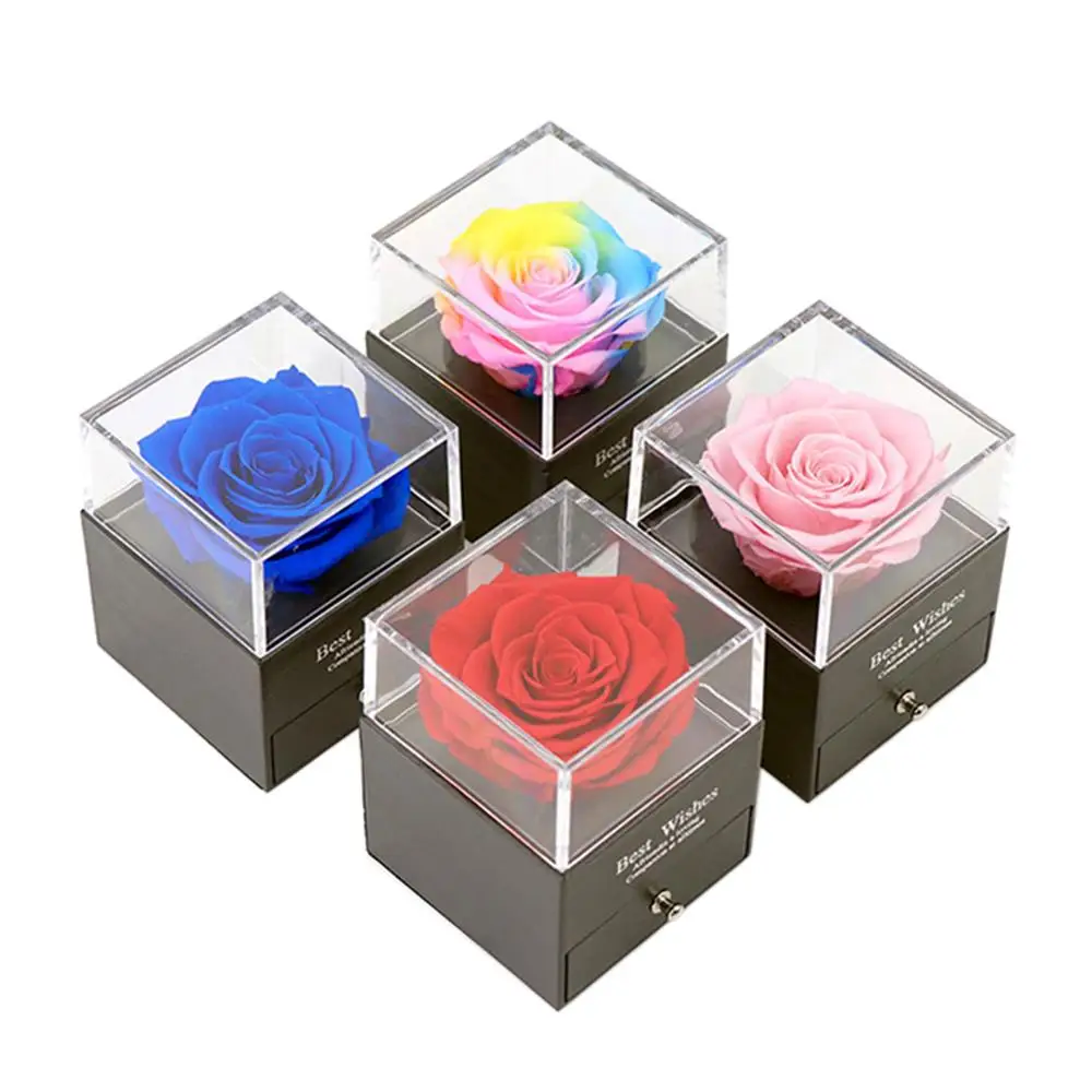 Real Rose Acrylic Display Box 2 14 Romantic Gift Forever Flowers For Wife Girlfriend Home Decor - Festive