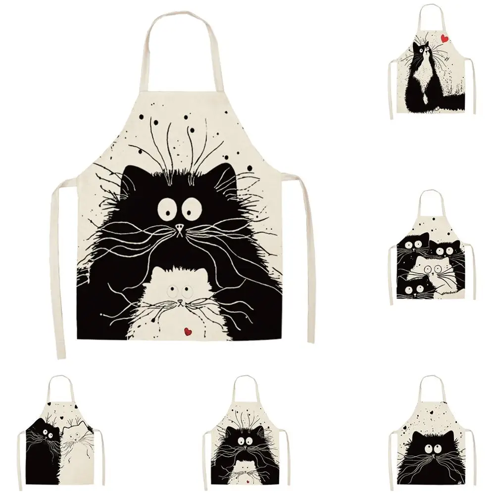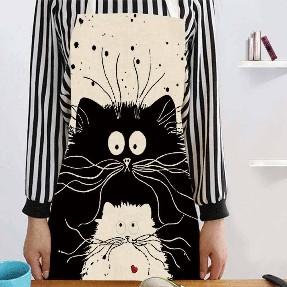 FYMX Cute black cat apron cartoon cat design clean sleeveless back tie linen apron - Household Merchandises
