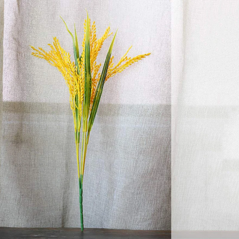 yumai 5 Fork Wheat Ear Plant Autumn Decor Simulated Grain Yellow Rice Seedling Fake Branch Paddy - Festive