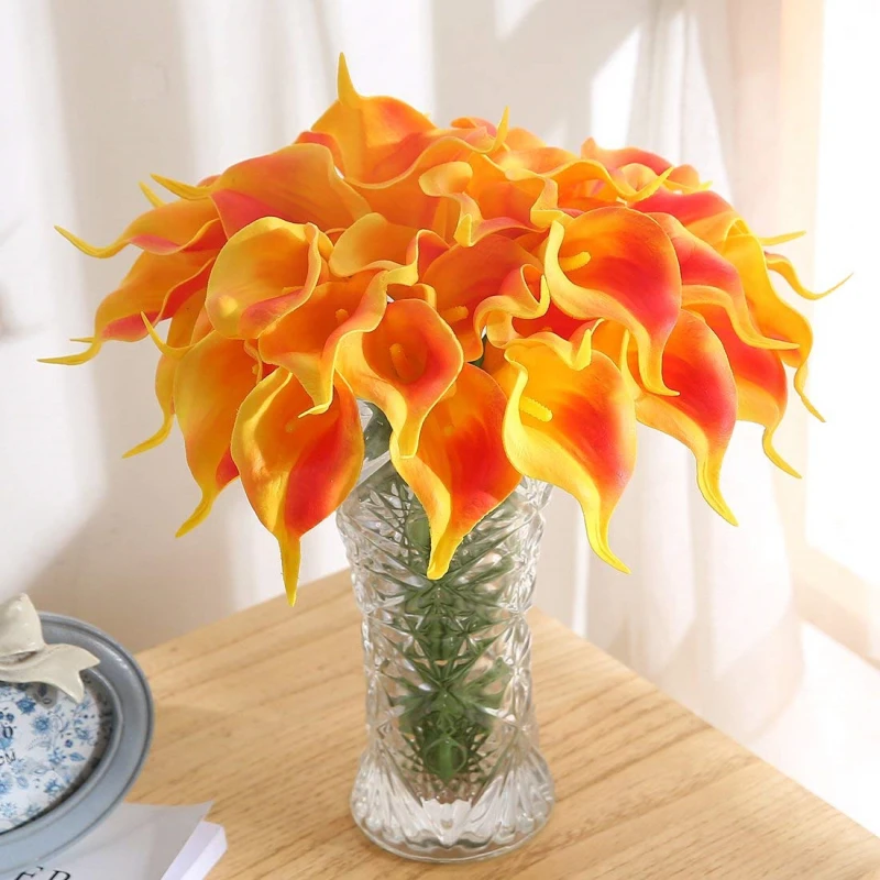 yumai 50 pcs set Black Calla Flower Bouquets Artificial Decor PU Lilies Flowers Bundles for Wedding - Festive