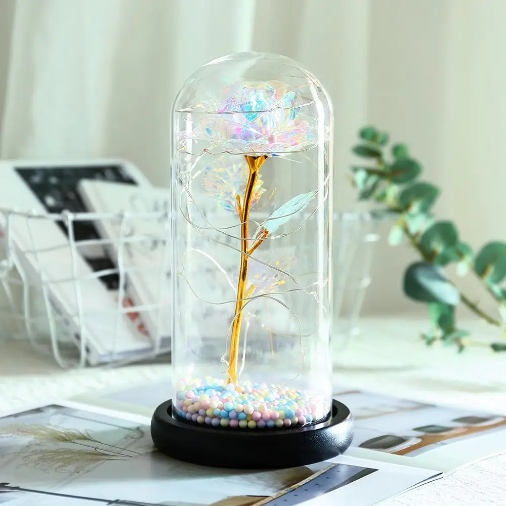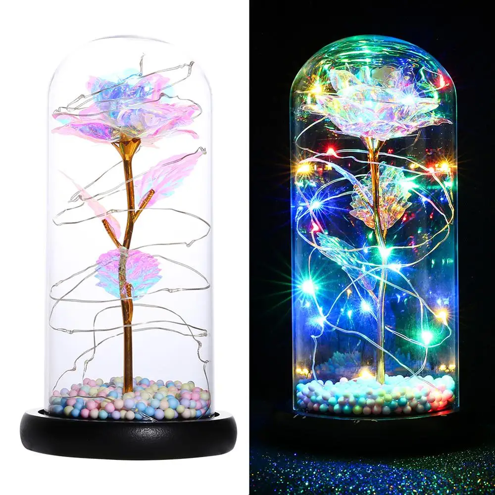 Beauty and The Beast Rose Enchanted and Led Light with Fallen Petals for Her for Valentines - Festive
