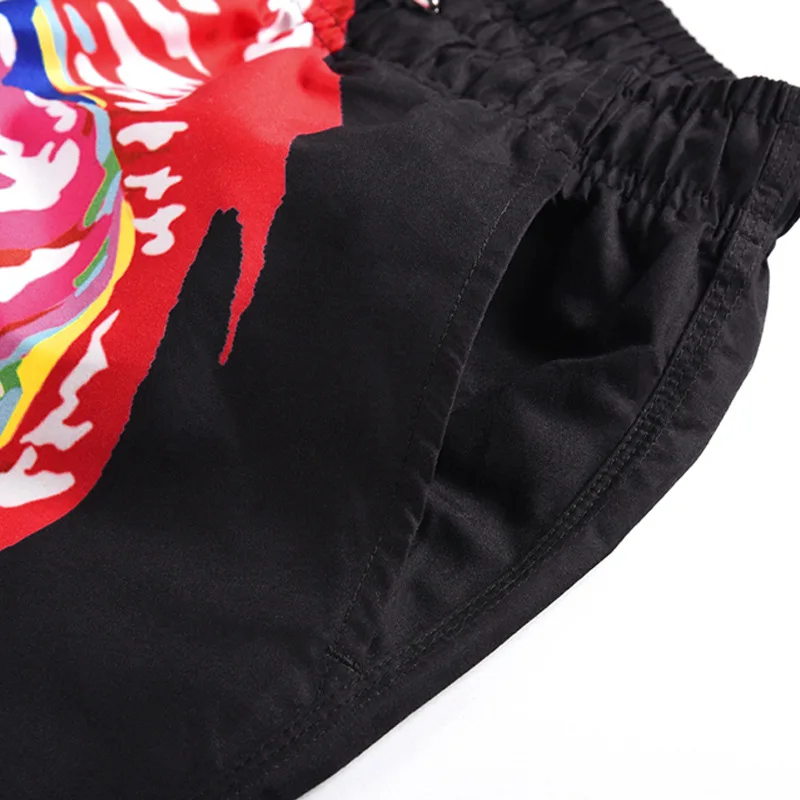 Red Lip Print Summer Men s Beach Casual Board Shorts Swimming Trunks Quick drying Drawstring Loose - Shorts