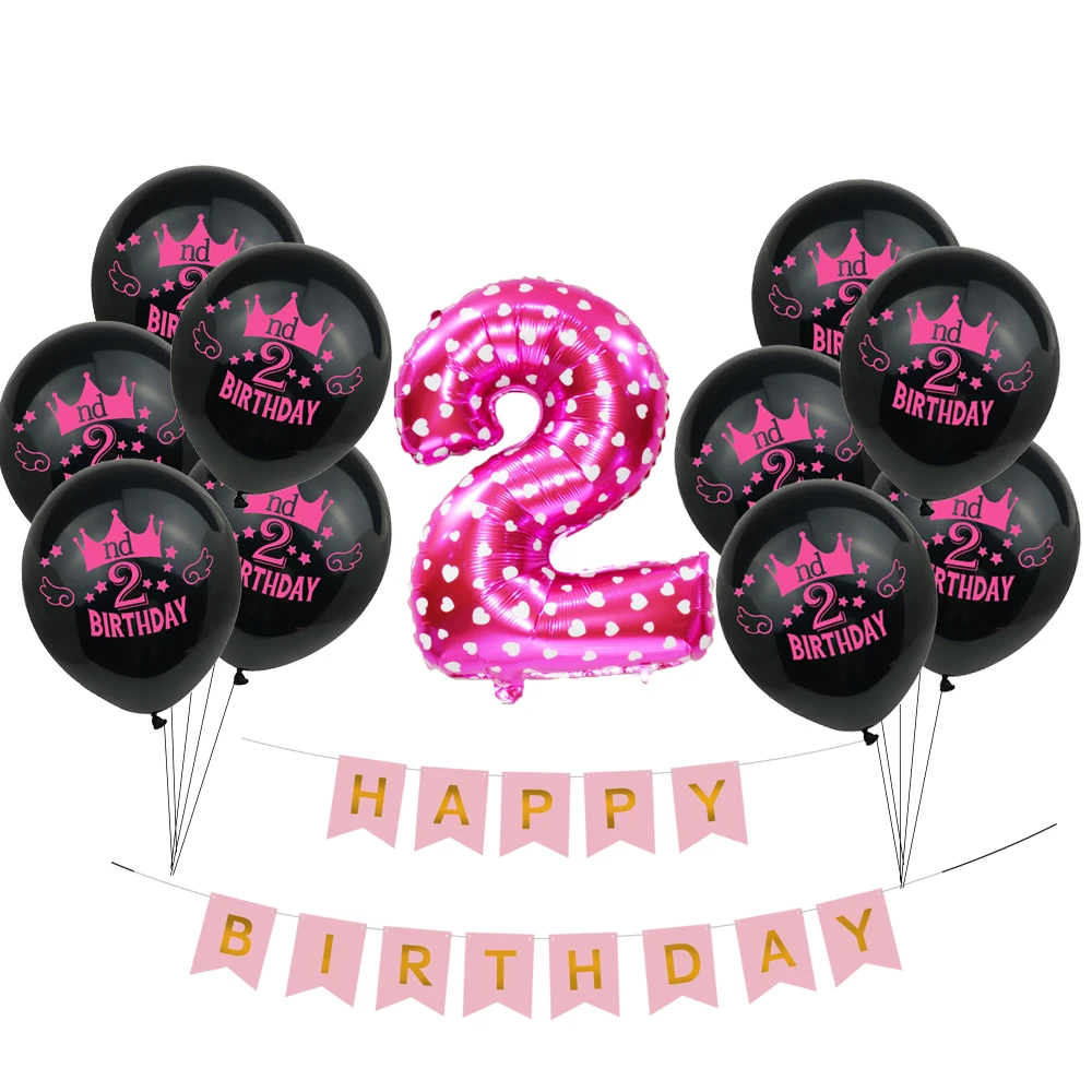 ZLJQ 1st 2nd 3rd Birthday Balloons Kit Happy Birthday Party Decorations Pink Blue Helium Balon Flag - Festive