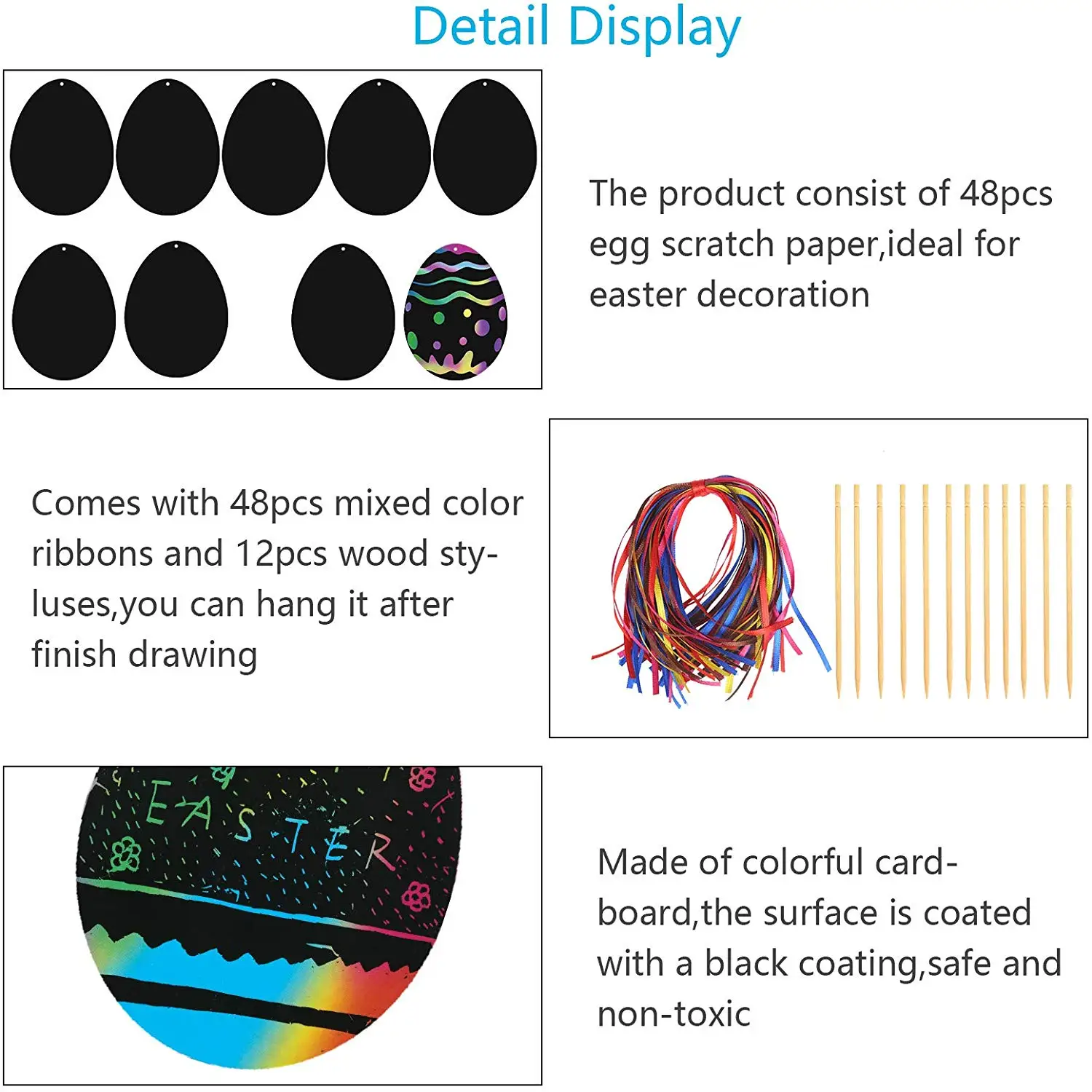 48pcs Egg Scratch Paper Rainbow Magic Scratch Art Notes Paper Easter Scratch Art 12pcs Wooden Styluses - Festive
