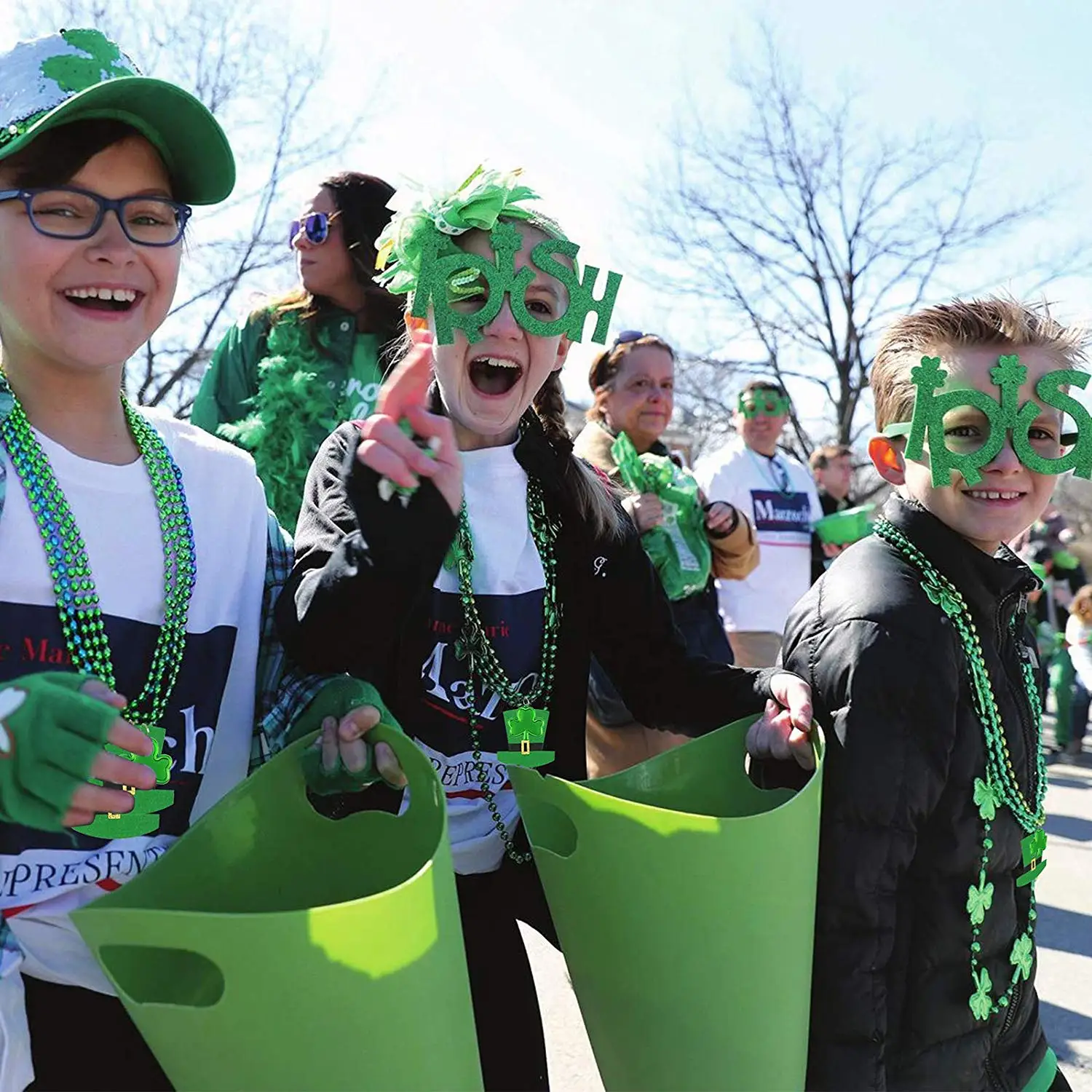 metable St Patrick s Day decoration Shamrock Necklace 8pcs Green Beads Necklace with Green Hat and - Festive