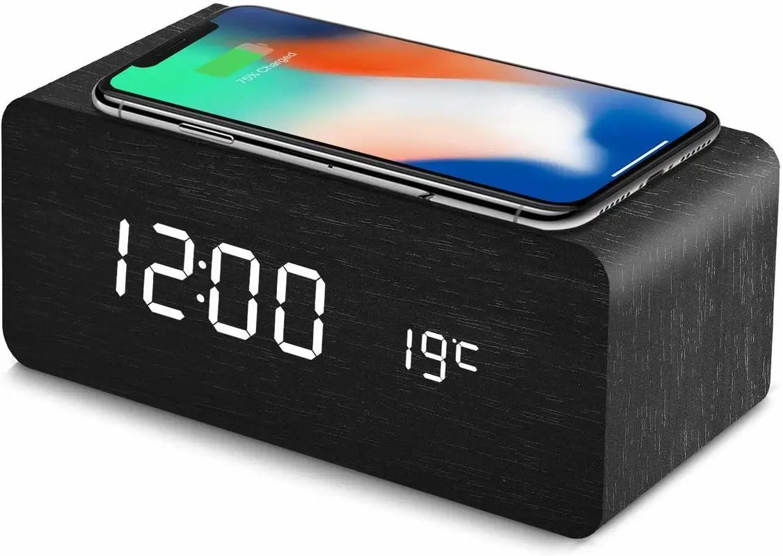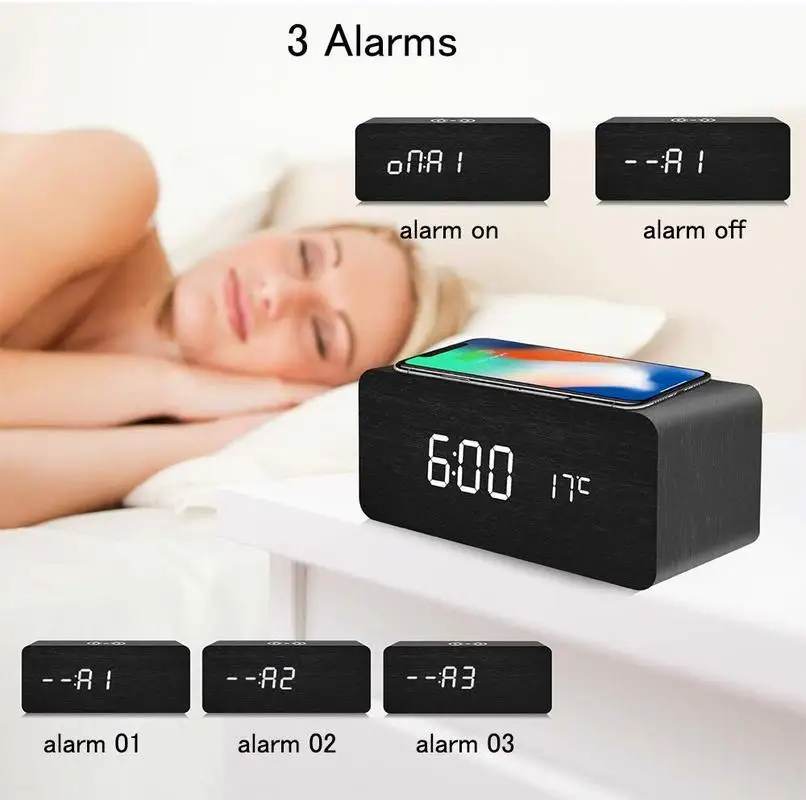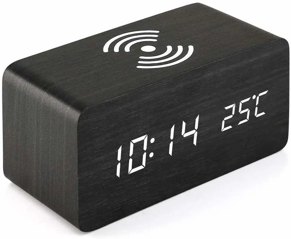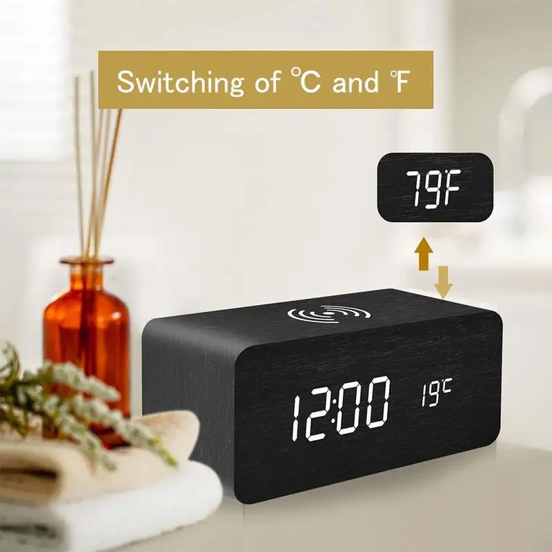 Digital Alarm Clock LED Wooden Alarm Clock Wireless Charging Easy to Operate With Sleep Mode Date - Home Decor