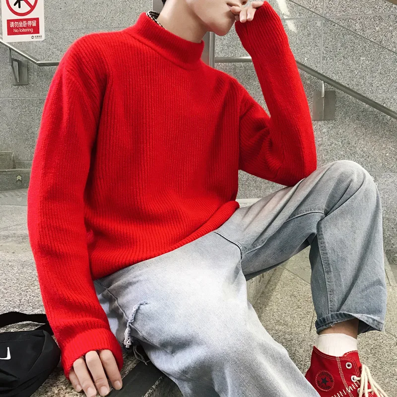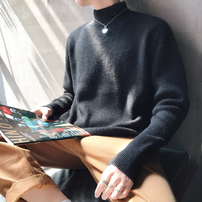 HW Turtleneck Sweatshirt Autumn and Winter Men s Solid Color Plus Velvet Sweater Small High Collar - Sweaters