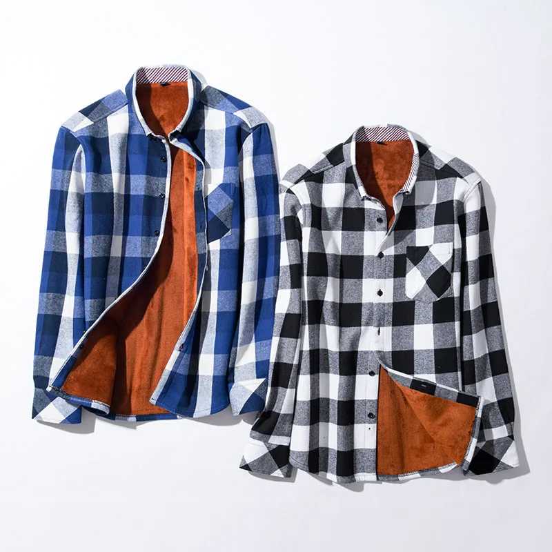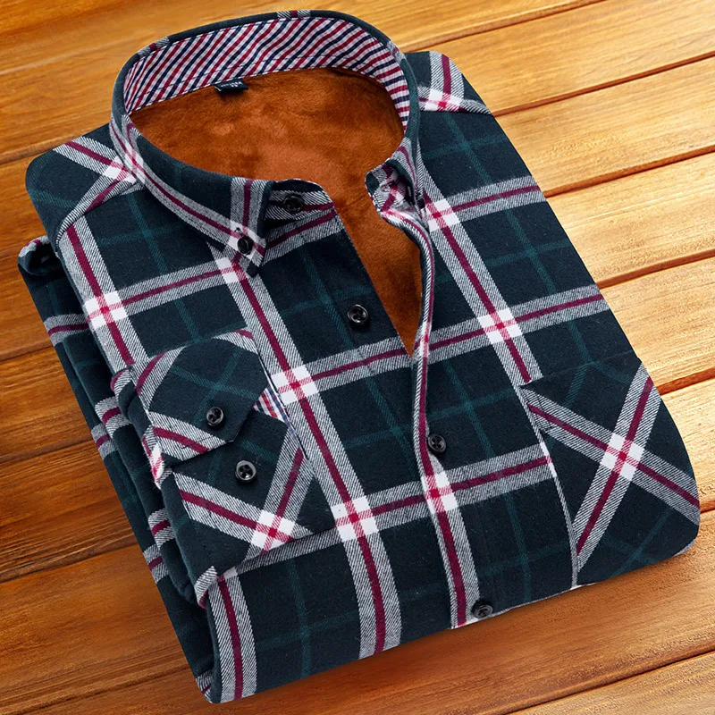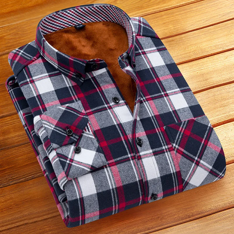 DAVYDAISY 2019 New Winter Autumn Men Shirt Thickening Warm Plaid Long Sleeve Fashion Causal Social Brand - Shirts