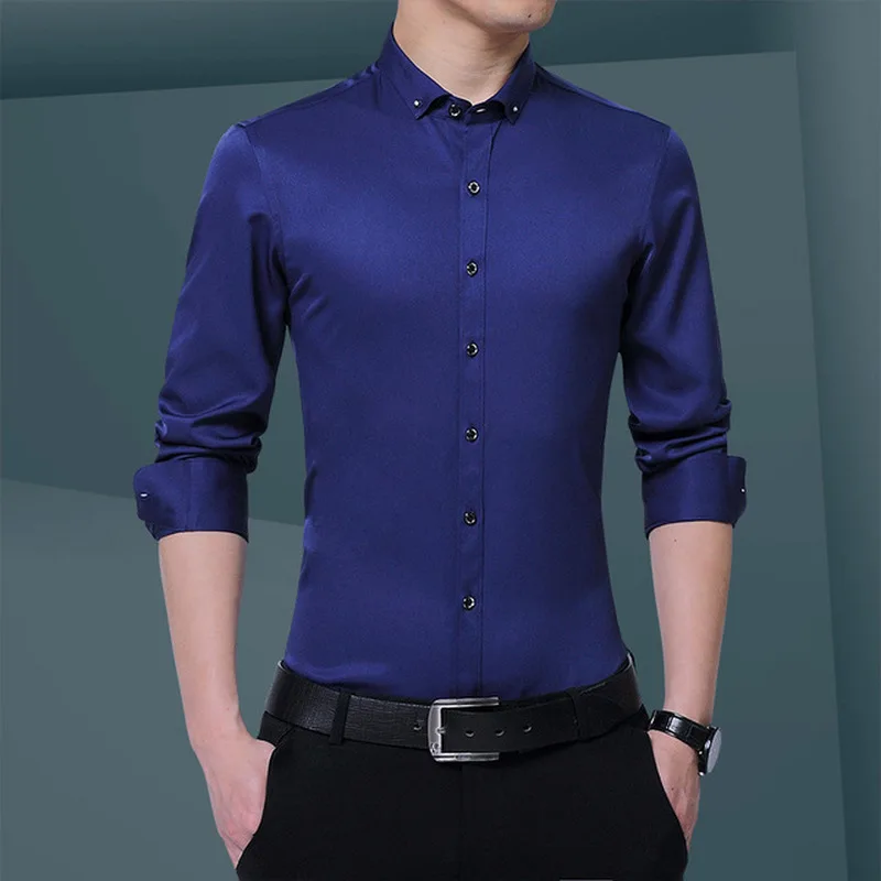 Men Shirt Long Sleeve Twill Solid Formal Business Shirt High Quality Brand Causal Solid Autumn White - Shirts