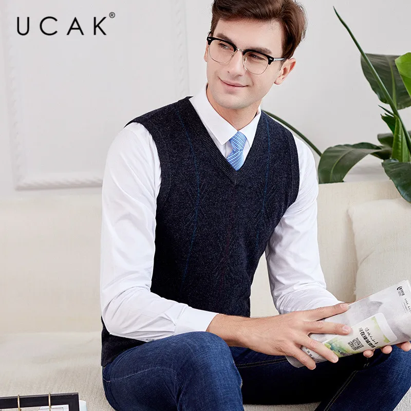 UCAK Brand Sweater Vests 2019 New Arrival Autumn WInter Pure Merino Wool Casual Fashion Style Pull - Sweaters