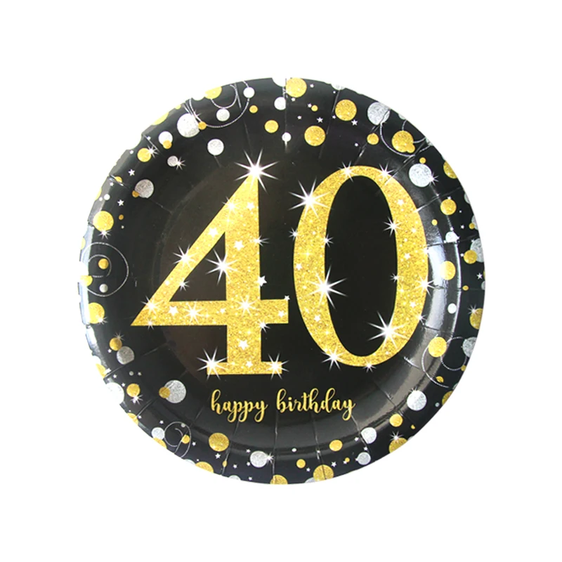 Cyuan 30 40 50 60 Years Paper Plate Cup Napkins Adult Birthday Party Decor Disposable Tableware - Festive
