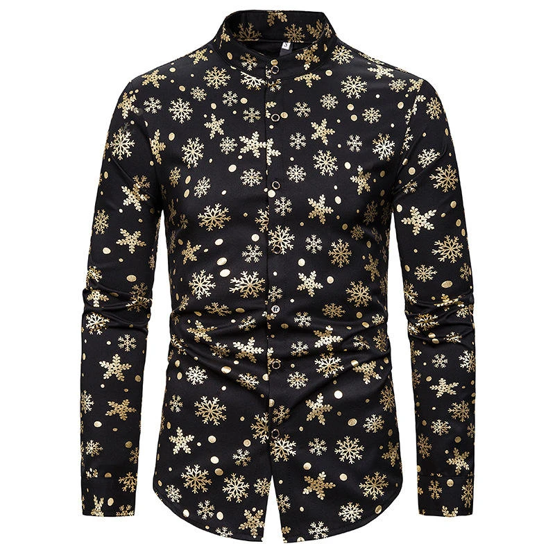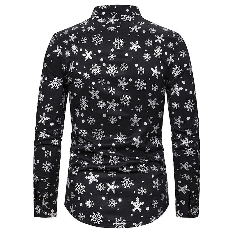 Snow Printed Mens Designer Dress Shirts Christmas Cardigan Long Sleeve Mens Tops Slim Mens Apparel - Shirts