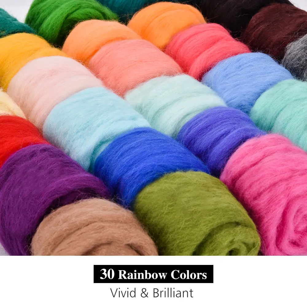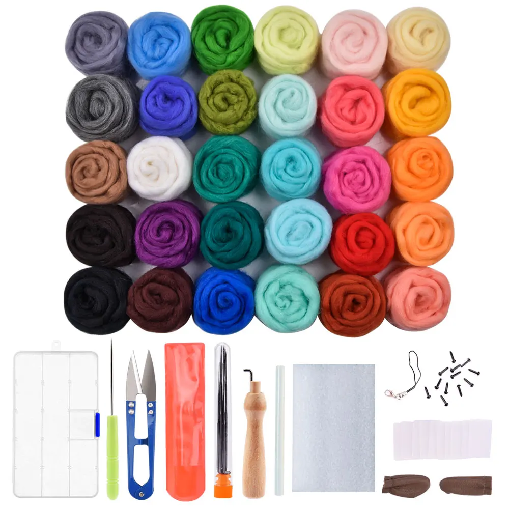 30 50 Colors DIY Wool Felting Kit Mixed Color Handle Needle Felting Tools Handmade Felt Needle - Arts,Crafts