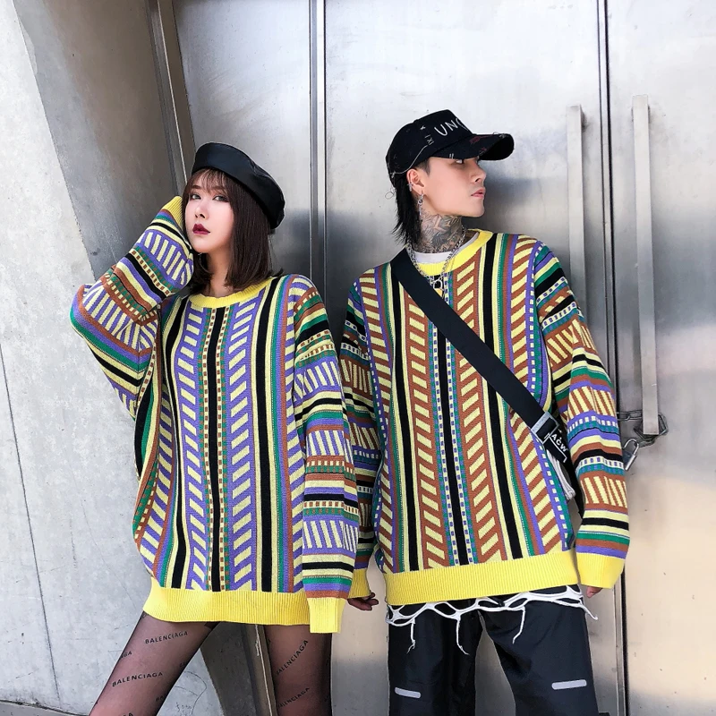 RLJT JIN Winter warm Geometric symmetry of the pattern of round collar long sleeve cotton pullover - Sweaters