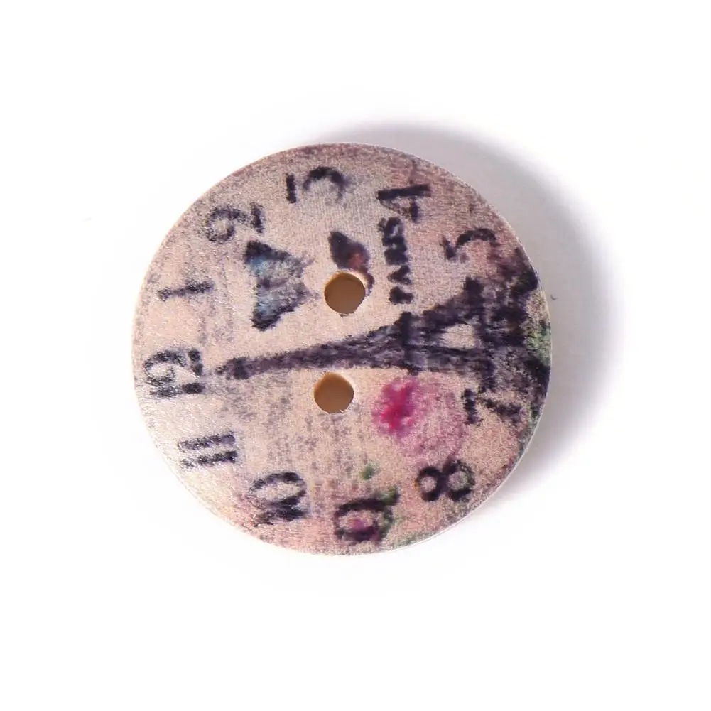50pcs 2 Holes Retro Clock Wooden Buttons High rech Painted Mini Wooden Buttons For Sewing Accessory - Arts,Crafts