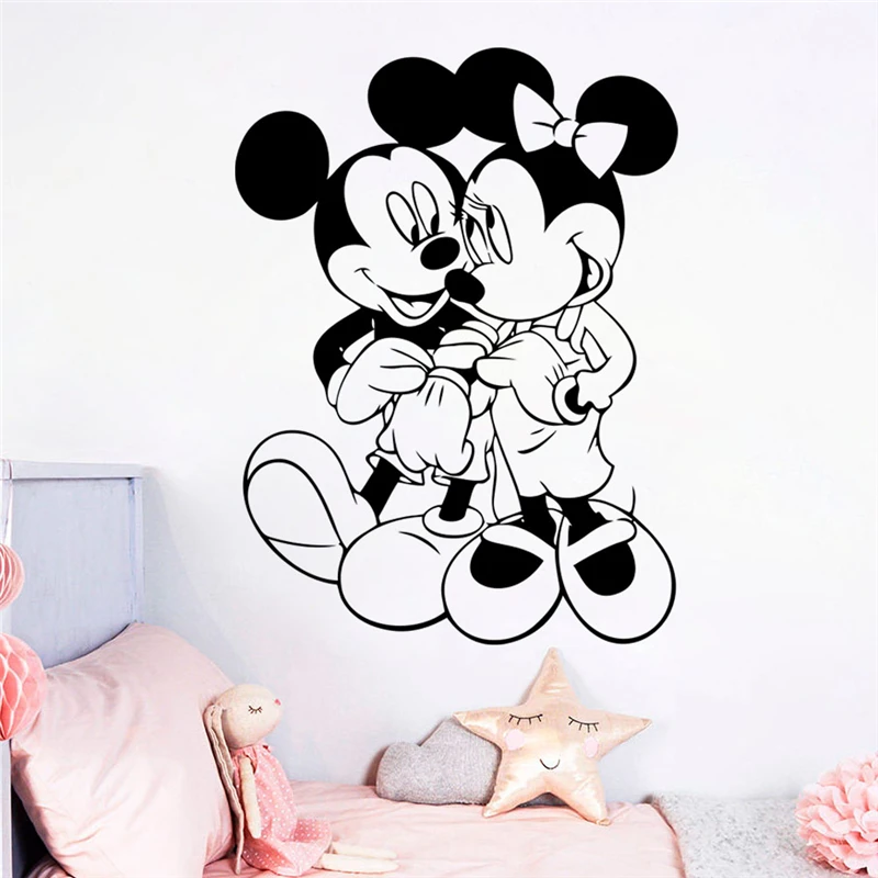 cartoon mickey minnie wall stickers for kids rooms nursery home decor disney wall decal vinyl mural - Home Decor