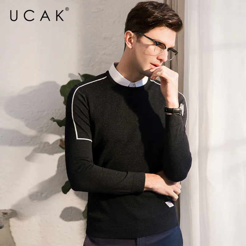 UCAK Brand Sweater Men Casual Shirt Collar Twinset Pull Homme Autumn Winter Knitted Wool Pullover Men - Sweaters