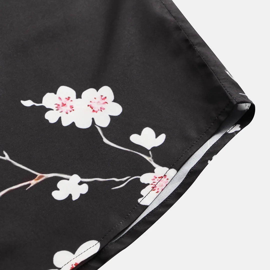 Hawaiian Shirt Print Tropical Plant Leaf Men Clothing 2018 Black Vintage Shirts Casual Turn down Collar - Shirts