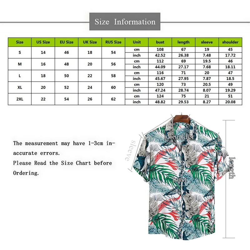 2020 Men Hawaiian Wild Shirts Men Tropical Button Blouse Top New Arrival Fashion Beachwears Casual Short - Shirts