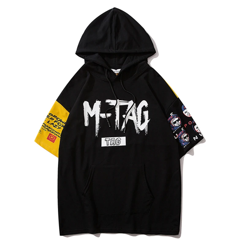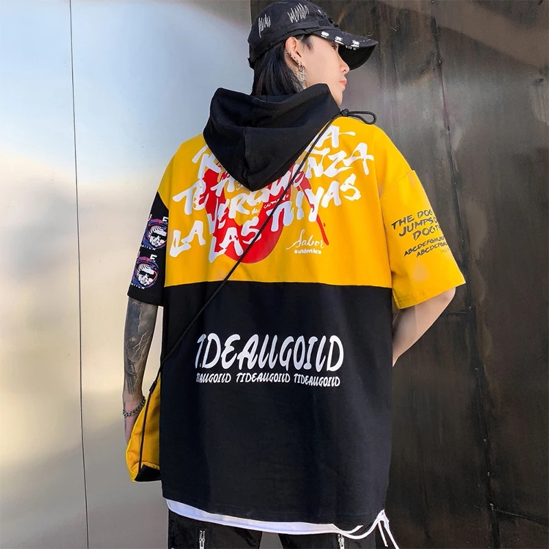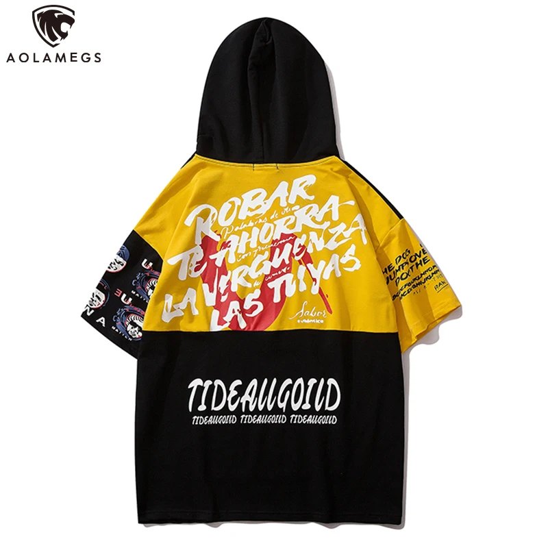 Aolamegs Men s T ShirtCool Letter Printed Casual College Style Cozy Patchwork Hooded Hip Hop High - Tops