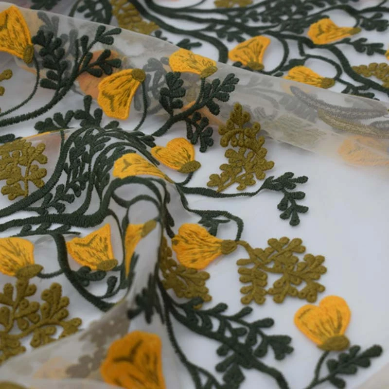 The bell orchids mesh mesh embroidery lace fabric for dress bazin riche getzner tissu telas por - Arts,Crafts
