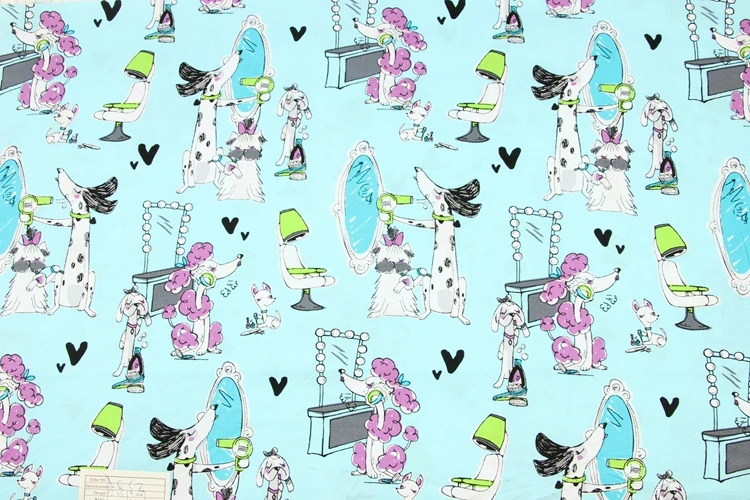 half meter plain cotton fabric with cartoon dog print handmade DIY garment dress children cloth 100 - Arts,Crafts