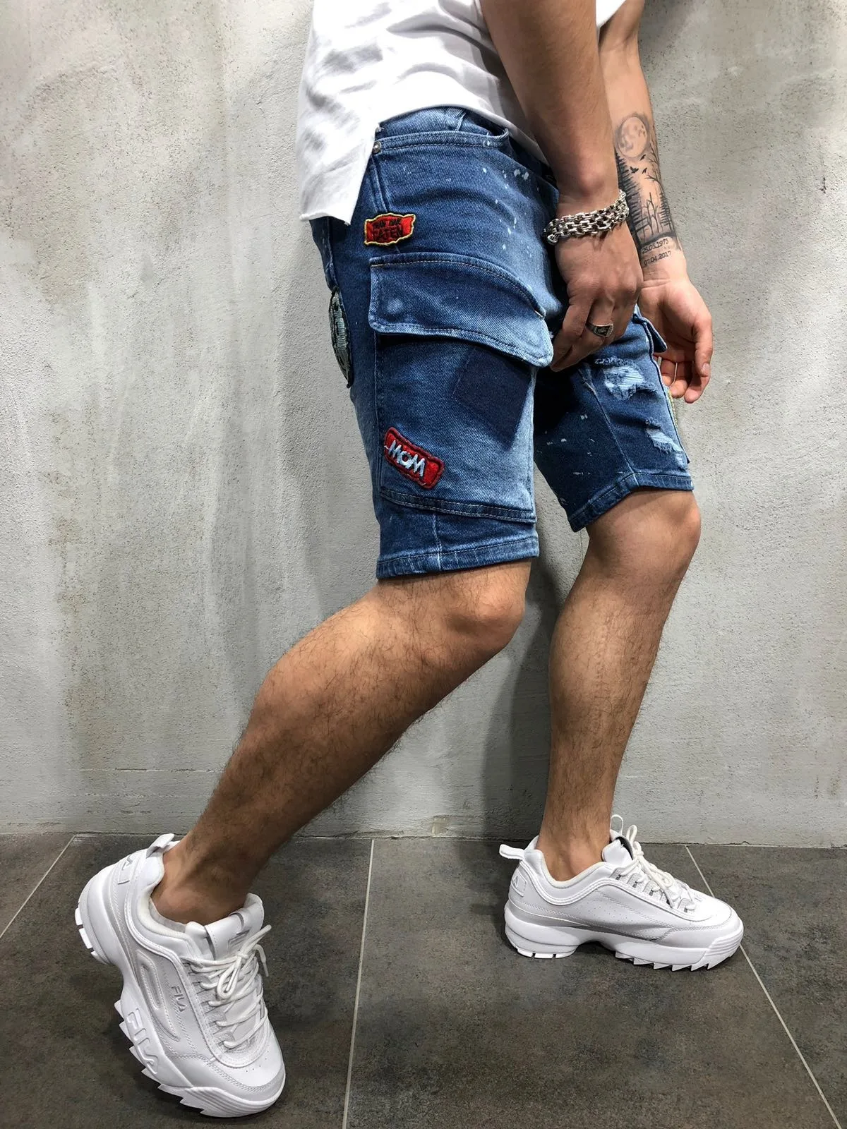 Mens Summer Ripped Short Jeans Knee Length Denim Shorts Homme Casual Biker Half Jeans Fashion Brand - Shorts