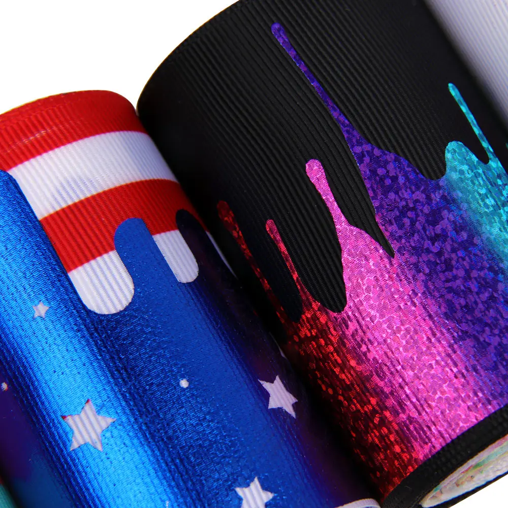 JOJO BOWS 75mm 2y Grosgrain Ribbon Cream Star Stripe Printed Bronzing Tape For Handmade Crafts Gift - Arts,Crafts