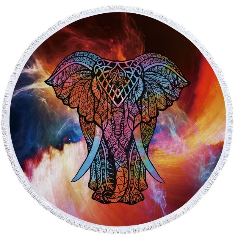 Large Yoga Round Mat Beach Cover Up Animal Elephant Print Microfiber Bath Towel For Adult Carpet - Home Textile