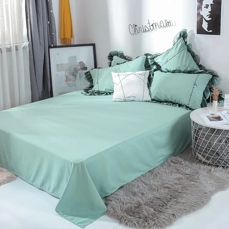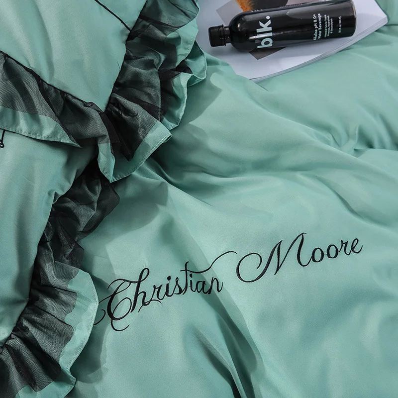 100 Cotton Lace Trim Bedding Set Gray Brown Duvet Quilt Cover Bed Fitted Sheet Set Ropa - Home Textile
