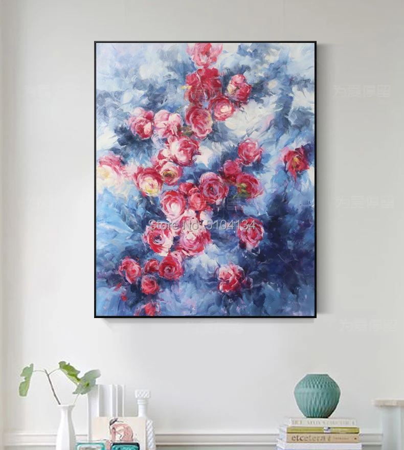 100 Hand painted Red Flowers Draw Morden Oil Paintings on Canvas Wall Pictures For Live Room - Home Decor